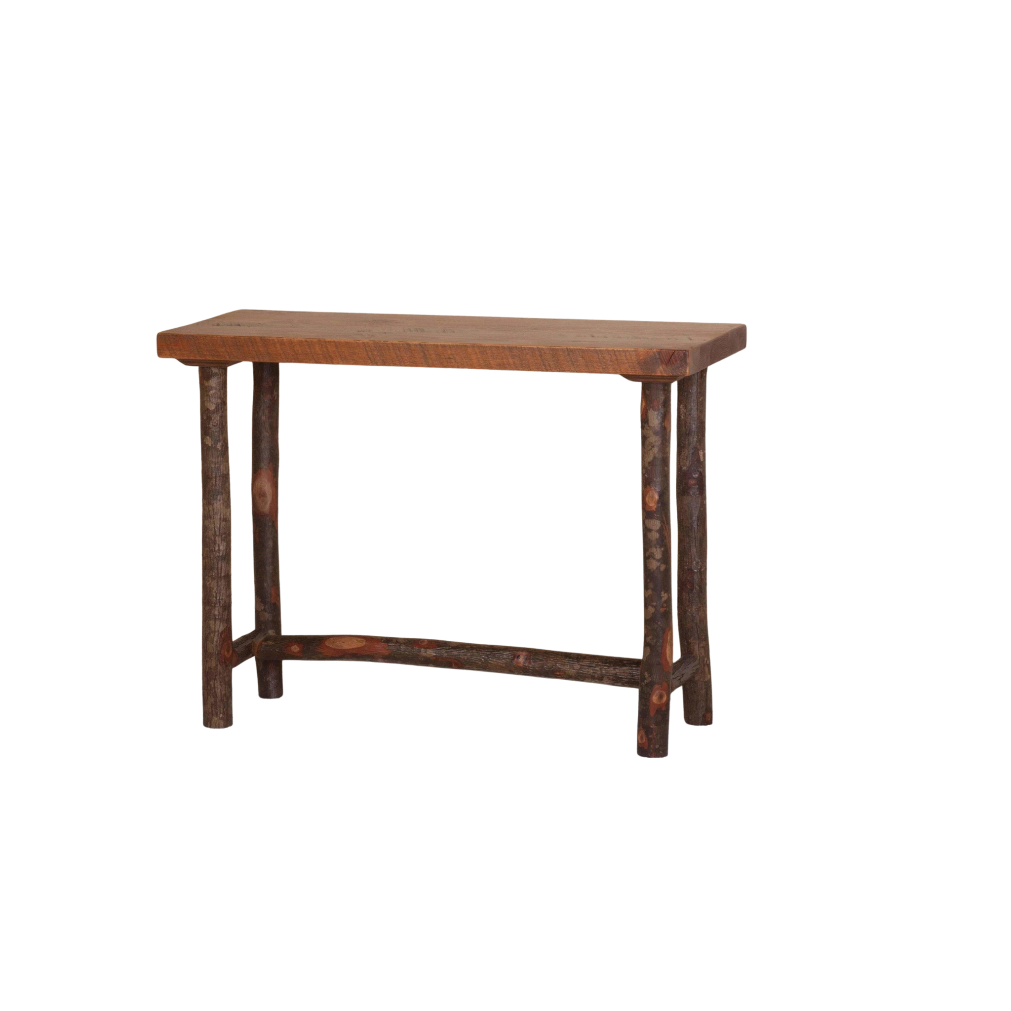Solid wood tabletop: Constructed from gluing two-inch pieces of rough-sawn pine wood together, the solid wood tabletop is impressively sturdy and will last for years, becoming an heirloom piece.