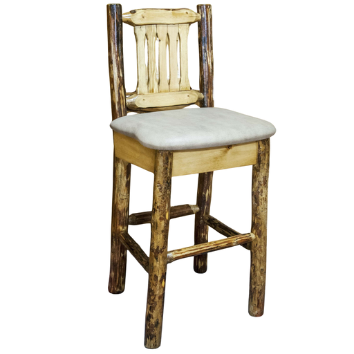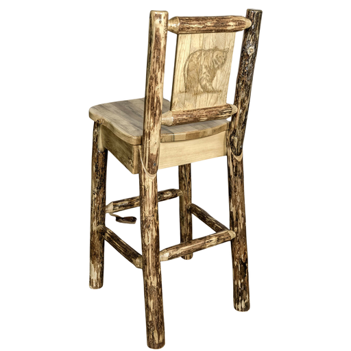View full detailsThe Montana Woodworks Glacier Country Collection Back Supported Barstool features a laser engraved bear motif and is handcrafted using solid, Ameri...